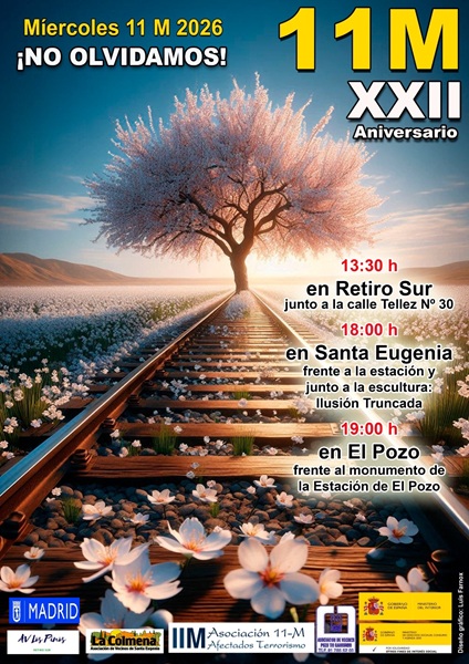 - 18:00h. Acto en Santa Eugenia, con la Junta Municipal del Villa de Vallecas. Frente a la estación de trenes y junto a la escultura Ilusión Truncada.