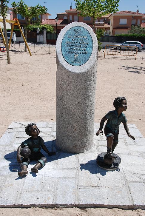 Tras la lectura por niños y niñas de la localidad de varios artículos de los derechos del niño, se descubrió un monumento en honor a los niños y niñas víctimas de atentados.